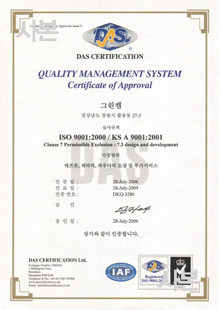 ±×¸°ÄÍÀÌ ISO 9001 ǰÁú°æ¿µ½Ã½ºÅÛ ÀÎÁõ ¹× 14001 ȯ°æ°æ¿µ½Ã½ºÅÛ ÀÎÁõÀ» ȹµæ